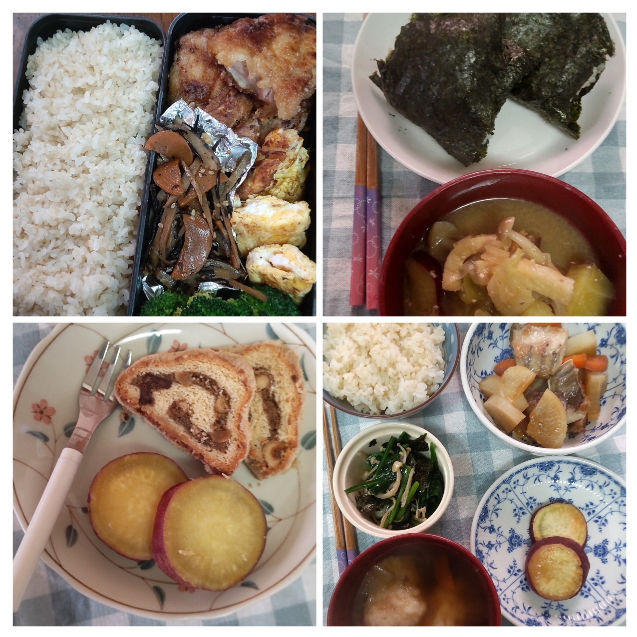 お米を買いに 今日はお米買いに行きました。相変わらず品薄でお高いな…私はいつも玄米で買ってその場で精米してもらいます。最近は五分付きです。さて今日のごはんの記録朝は海苔おむすびに重ね煮味噌汁お弁当のメインは竜田揚げ卵焼きと、ブロッコリーの蒸し煮根菜のきんぴらおやつはシュトーレン💕お夕ごはんぶりと大根煮さつまいも蒸し煮ほうれんそうとえのきの海苔和えすいとん汁寒くなりました。感染症予防して元気に過ごしましょう😊