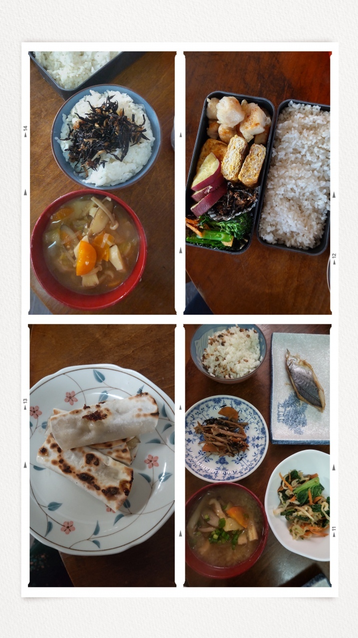 苦手な家事は 作り置きと献立を考えること。大嫌いです(笑)なので作り置きはしないし、献立を考えるのもやめました。お弁当も毎日のごはんも台所に立ってから、『これ作ろ』にしてます。考えるのをやめたらずっと時短に。苦手なことから逃げたら楽になります😊今日のごはん朝ごはんひじきのふりかけごはん根菜と里芋のお味噌汁お弁当梅酢唐揚げメインあとは適当おかずおやつバナナ餃子夕ごはんさわらの幽庵焼ききんぴら青菜と切干大根のナムル重ね煮味噌汁煎り玄米ごはん