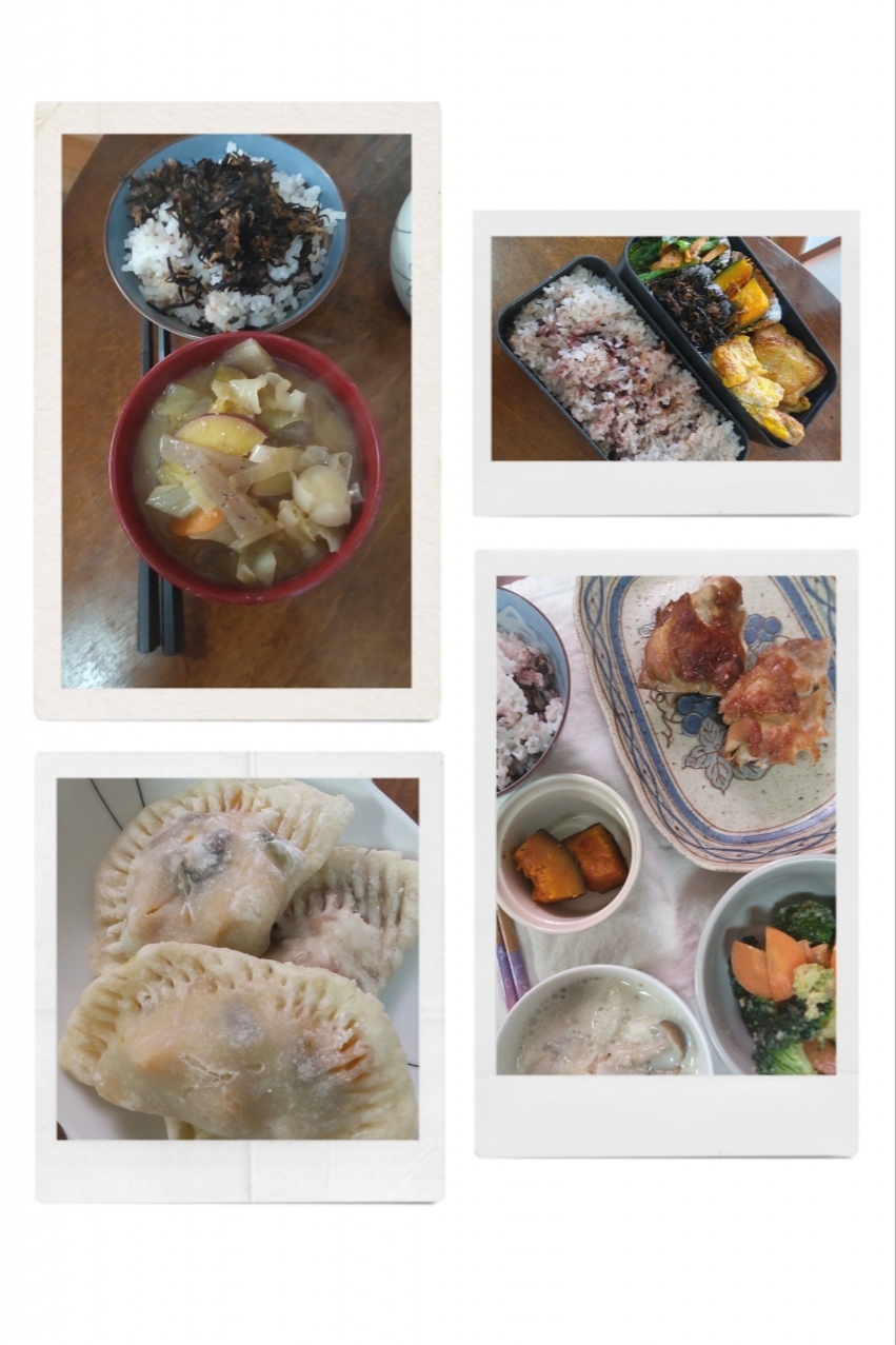 1月16日 今日は暖かな1日でした。1月というのに気持ち悪いくらいでしたごはんの記録朝ごはん重ね煮味噌汁ひじきのふりかけごはんお弁当鶏の照り焼きメインおやつかぼちゃのパイ夕ごはん鶏の照り焼きかぼちゃの煮物ブロッコリーの胡麻みそ和え根菜ときのこの豆乳スープ黒米ごはん