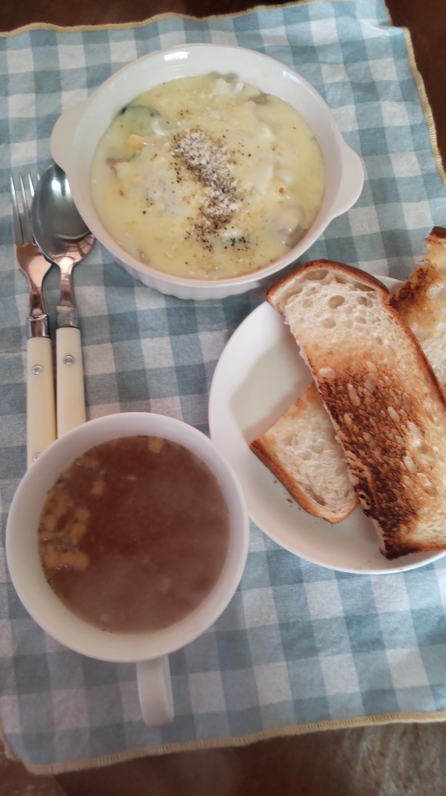 今日のおうちランチ 旦那が午前半休なのでグラタンミックスを使って喫茶店風に☺️私はグラタンミックスの存在をつい最近知りまして(笑)それから食べる機会を狙ってました🤭教えてくれたのはmemoブロガーのこまめさん❣️私もやっとグラタンミックス使いましたよ✨さて、愛するmemoブログですが、本日からいよいよ本格閉鎖。ページを開けなくなりとても寂しい気持ちです。しばらくはmemoブログの思い出に浸ってしまいそう😓