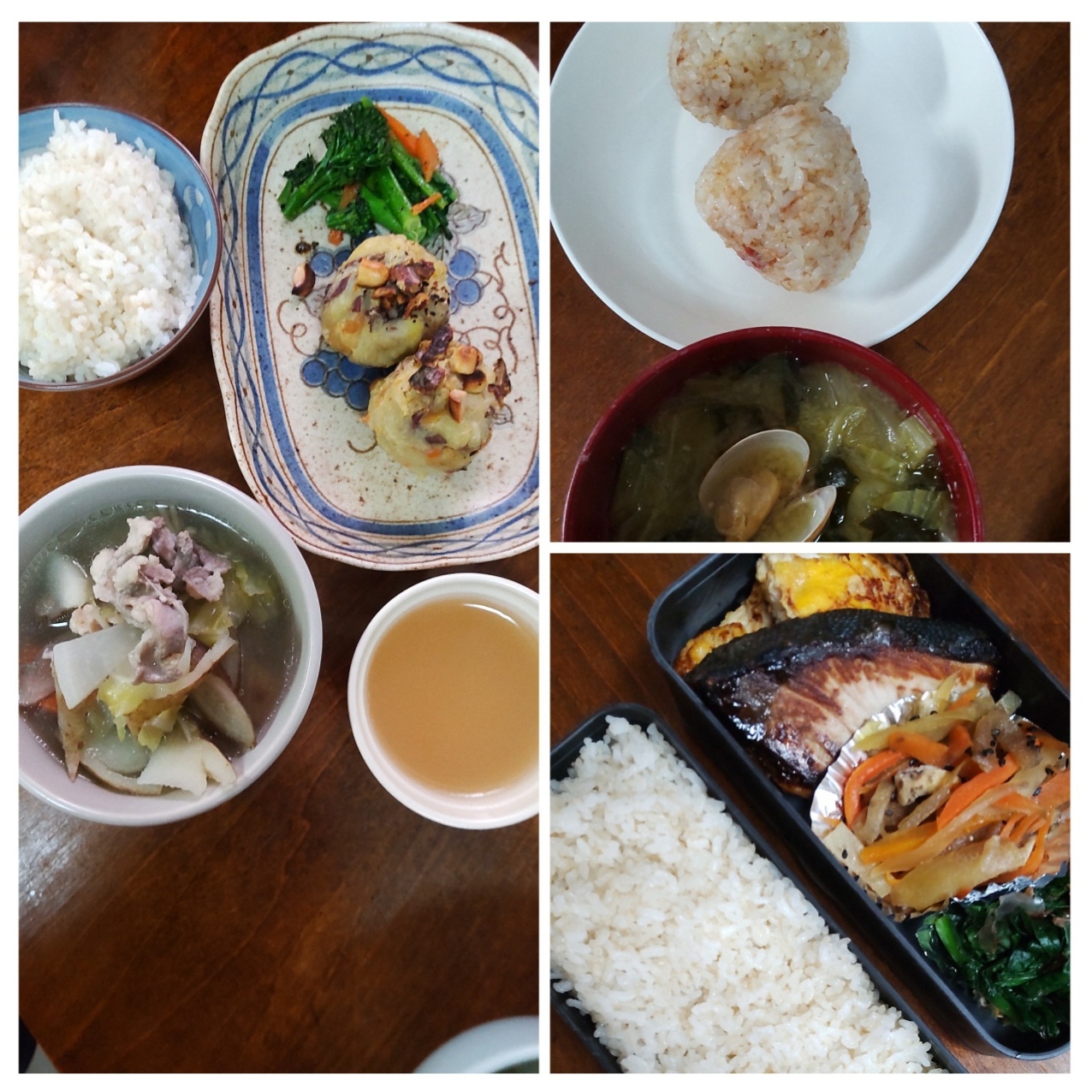 2月25日久しぶりのおしめり 朝から雨ずっと晴れ続きで乾燥が気になってたので久しぶりの雨が良き✨ごはんの記録朝ごはん梅おかかおにぎりあさり入りの潮味噌汁お弁当ぶり照りメインおやつはちみつレモンゼリー夕ごはん塩豚と根菜スープポテトナッツボールブロッコリーの黒ごま和え
