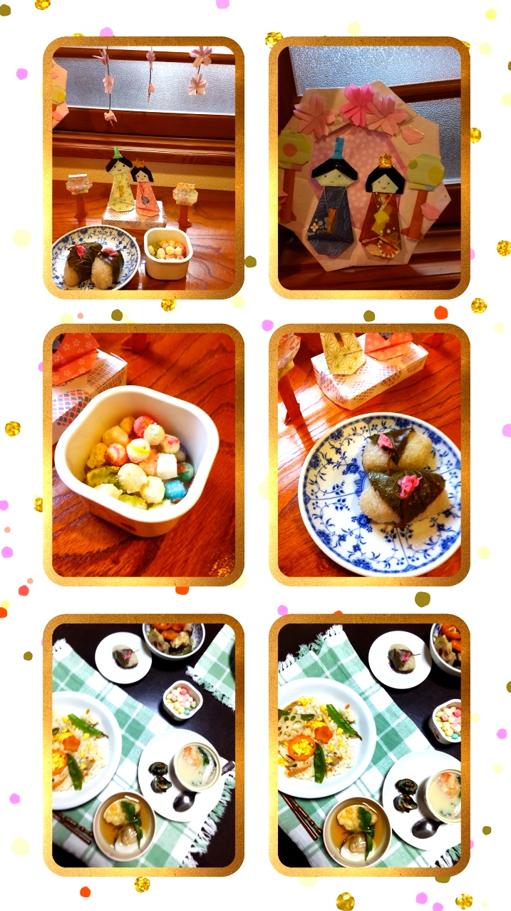 ひ…ひな祭り… 今年は…5時間かかった…😂桜餅もひなあられも1から作りました良くも悪くも手抜きできない性分なのかも…(不器用なくせに)途中くじけそうになった😓完全自己満足な献立ちょっと反省。今年の献立ひなちらしはまぐりのお吸い物青菜の磯辺巻き豆乳寒天寄せ筑前煮ひなあられ桜餅