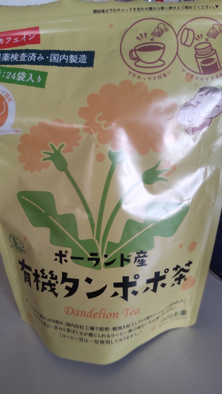 たんぽぽコーヒー 春にはたんぽぽコーヒーを飲みます。花粉対策でコーヒーを控えているのでたんぽぽコーヒーを飲んでます。たんぽぽは古くから食用、薬用として利用されていたそう。独特の苦味がコーヒーの苦味に似ています。花粉症や、胃腸の不調、母乳の出が悪いときに効果があるとか。解毒作用もあるみたいですね。